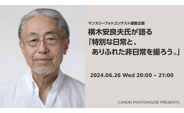 横木安良夫氏が語る「特別な日常と、ありふれた非日常を撮ろう。」マンスリーフォトコンテスト自由部門の審査員 横木安良夫氏によるライブ配信のアーカイブ動画です。