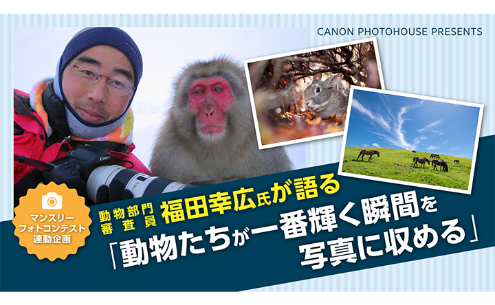 審査員 福田幸広氏が語る「動物たちが一番輝く瞬間を写真に収める」キヤノンマンスリーフォトコンテスト審査員の福田幸広氏による動画コンテンツです。EOS R5 Mark IIのインプレッションと作品もご紹介しています。
