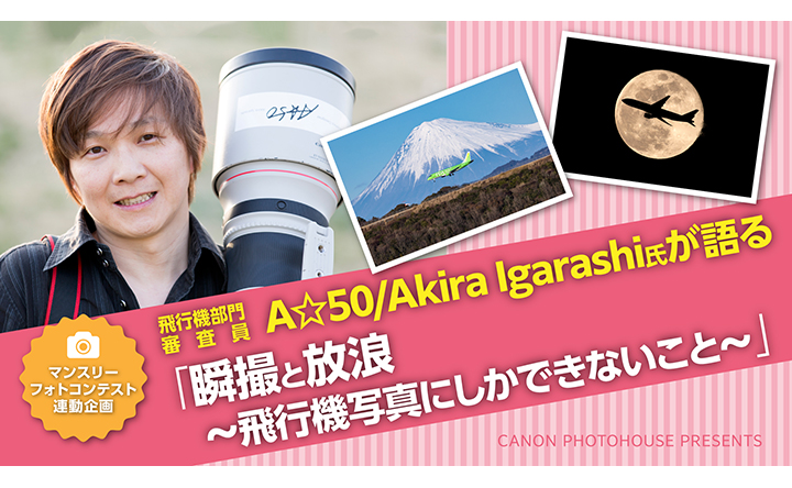 審査員 A☆50/Akira Igarashi氏が語る「瞬撮と放浪~飛行機写真にしかできないこと~」キヤノンマンスリーフォトコンテスト審査員のA☆50/Akira Igarashi氏による動画コンテンツです。応募作品の講評もご覧いただけます。