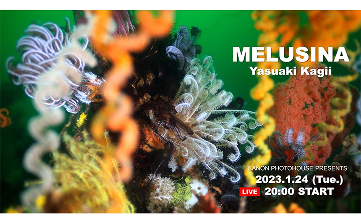 「MELUSINA」~写真集で魅せる海中の色彩美CP+2023配信コンテンツ。鍵井靖章氏をお迎えし、写真集に掲載された写真の紹介を中心に、撮影でのエピソードや写真集の魅力をお伝えします。