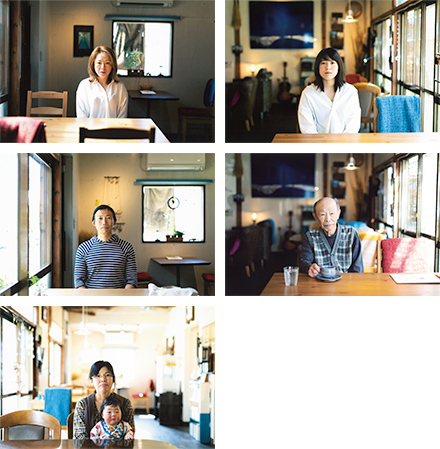 米屋カメラを向けられて意識しているはずですが、5人ともカメラを見て笑っているわけでなく、とても自然な雰囲気がとらえられています。モノクロにしたことで、いつの時代か分からなくなり、少し古めかしい印象になっているのかもしれません。