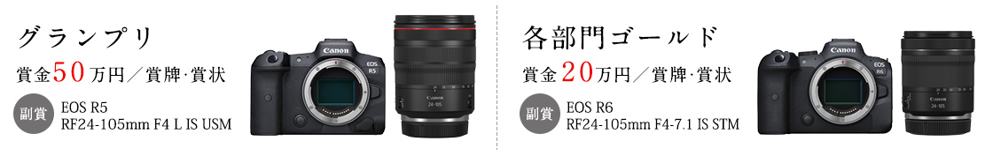 ゴールド | 各1名 | 賞金20万円/賞状・賞牌 副賞EOS R6・RF24-105mm F4-7.1 IS STM |