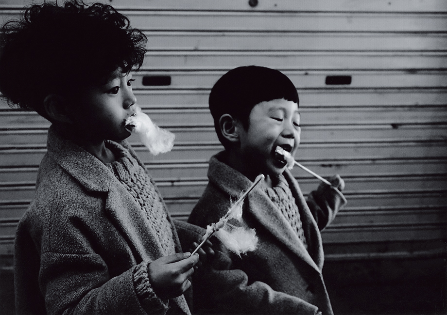 瀬戸二人ともすごくいい表情ですよね。もし、すれ違いざまだとしたら難しいシチュエーションだと思いますが、フレーミングが絶妙です。ひょっとしたらノーファインダーなのかな。歩いている感じ、子どもたちの動きがよくとらえられています。あと、モノクロのトーンもよかったですね。