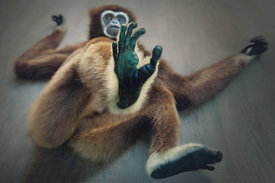 ゴールド賞の通知を受け取ったときは驚きと感激でいっぱいでした。選んでいただき厚く御礼申し上げます。作品は福岡市動物園に行ったとき、シロテテナガザルが座ったり寝転んだりいろいろなポーズをとってくれて、私の方に向かってキックしたときの一枚です。最近は動物を撮ることが多く、面白い動きがありますが、いつもシャッターチャンスを逃すばかりです。努力が足りないと反省しています。身に余る賞をいただきありがとうございます。