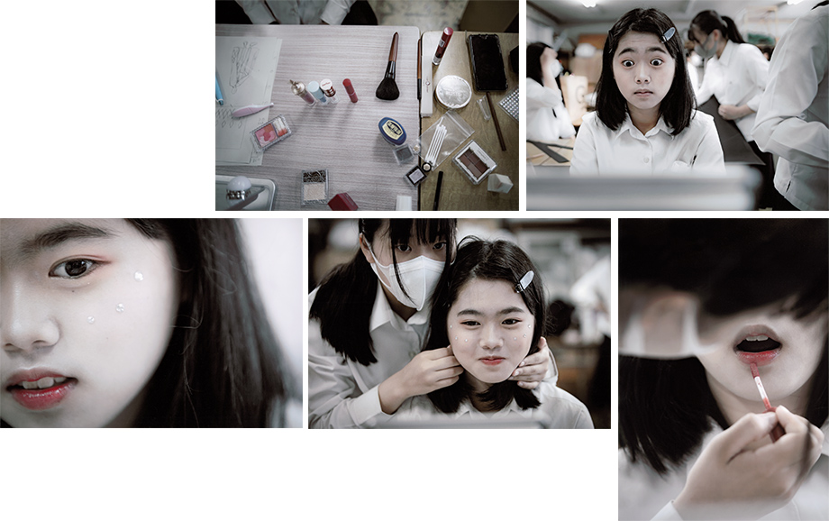 かくた確かに1枚目の表情がユニークですね。メイクをする前なのになんで驚いているんだろうと思って面白く感じました。あと、組写真の構成が素晴らしく、メイク道具だけの写真を入れたことで、女の子の表情がとても生きたと思います。そして、最後のメイクをされて喜んでいるのか、いないのかちょっと分からない表情も、すごくリアルでいいと思いました。