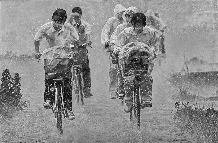 田尾まず、こんな雨の中でも撮影していることが素晴らしく、よく見ると、子どもたちが笑いながら自転車を漕いでいるんですよね。ずぶ濡れになりながらも、どこか楽しそうで、それがこの年代の特徴をうまく表しているように感じました。