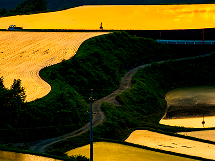 田尾WEB部門ゴールド賞の「豪雨」は、雨でずぶ濡れになりながら自転車に乗って家に帰る学生たちを正面からとらえた作品です。