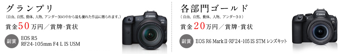 賞金50万円/賞状・賞牌 副賞EOS R5、RF24-105mm F4 L IS USM |