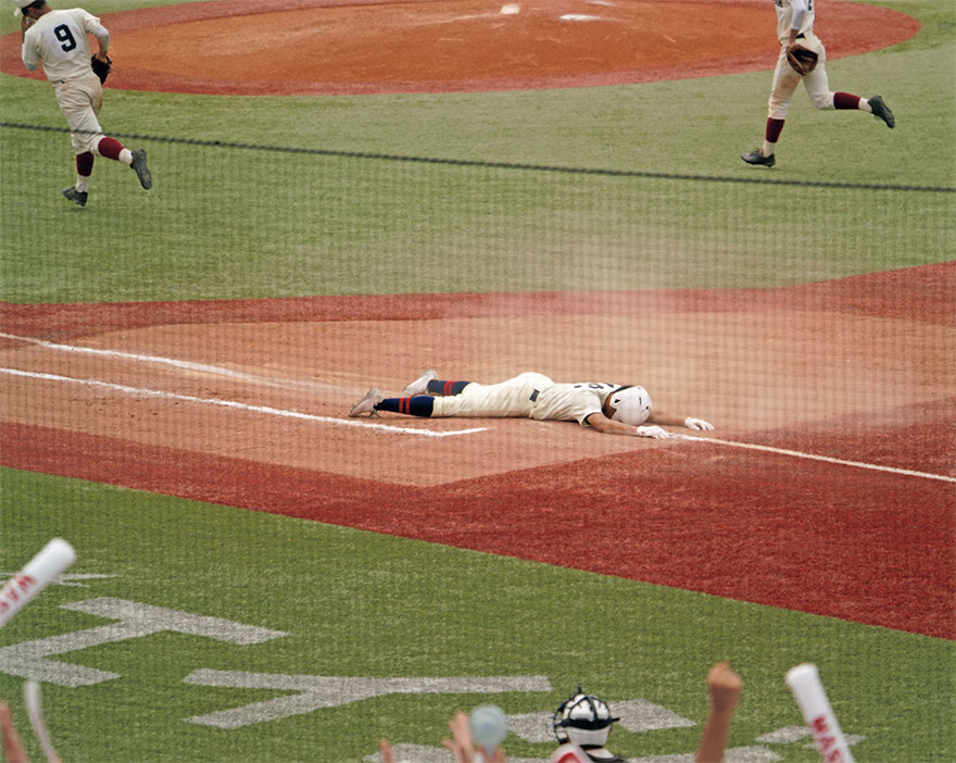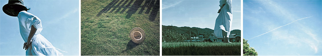 岡本私も家族の写真を撮ると顔を写さないでとよく言われますが、なんとなく、お母さんが顔を写さないでといったら、「大丈夫、私にはストーリーがあるから」というような会話を想像しました。1枚目は顔が見えなくても体のラインなど特徴的な部分をしっかりとらえ、2枚目は帽子が風に飛び、3枚目は帽子が飛んだけど、それでも顔が見えず、4枚目で風に流れる飛行機雲を写すことで、風を感じさせる。そうしたストーリーが4枚で見事に表現されています。