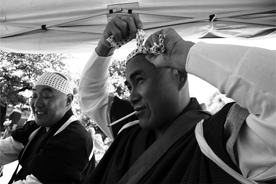 櫻井おそらく、これから神輿を担ぎに行くのでしょう。ちょっと一服しながらハチマキを巻いて気合いを入れている様子がよく伝わってきました。