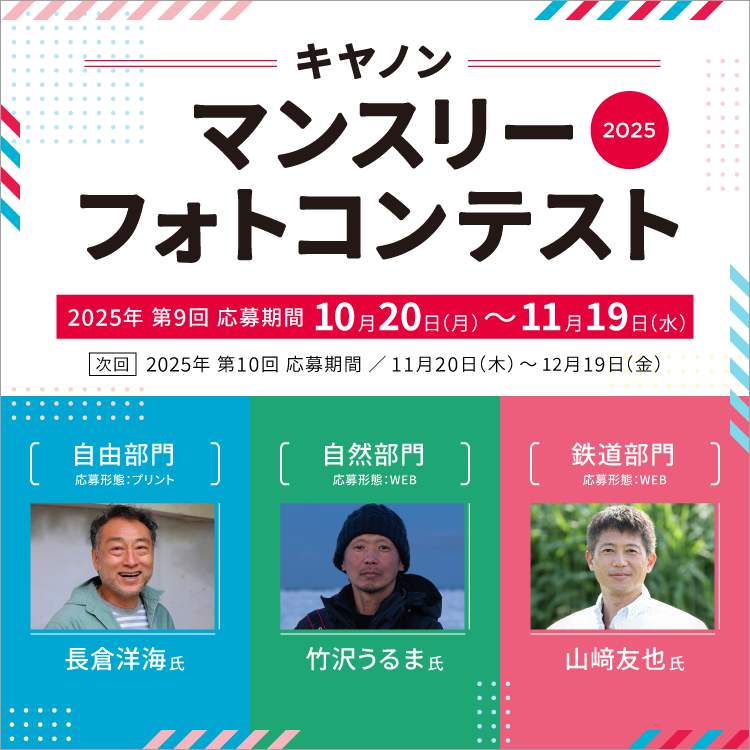 入賞者は、月刊写真誌「CANON PHOTO CIRCLE」、キヤノンホームページ、SNSで発表いたします。