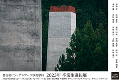 本展は、名古屋ビジュアルアーツ写真学科を2023年3月に卒業する学生による選抜展です。11人の学生を選抜し展示を行います。展示する作品は昨年末の期限までに提出された卒業作品の中から審査によって高得点が付けられたものです。ドキュメンタリーからスタジオ作品まで幅広いジャンルの作品が展示されます。学生たちの写真に向き合うエネルギーを、ぜひ感じていただきたいと思います。
