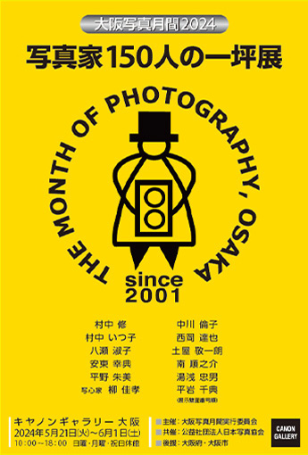 今回で23回目を迎える大阪写真月間のメインイベントである「写真家150人の一坪展」の特色は、作品内容や方法はもちろんのこと、年齢、国籍、職業などに関係なく参加できるところにあります。また展示するギャラリーや壁面の場所も抽選で決定します。つまりいっさいの審査や選別は行いません。この何でもありの写真展に「展としてのポリシーがない」とのお叱りを受けることもありますが、80歳を超える超ベテラン作品の横に、孫のような18歳がはじけるような写真を並べる、そんなお好み焼き的「ごちゃ混ぜ感」が本展の魅力であると考えます。ご高覧いただければ幸いです。