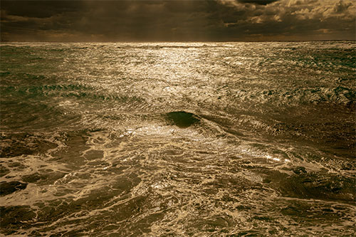 沖縄に伝わる海の神・龍神の伝承を手がかりに、野村は「青」の光の中に、生と死、祈り、そして島に刻まれた時間の層を掬い上げようとしている。