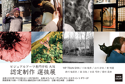 本展は、ビジュアルアーツ専門学校大阪の2年生(2022年3月卒業予定)の学生より選ばれた8名の卒業制作(「認定制作」と呼称)のうちから選抜された作品展となります。学生が卒業に向けて制作した渾身の作品をご覧いただきます。