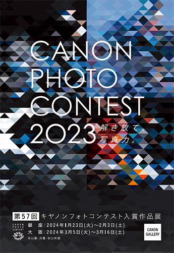 国内有数の規模を誇るキヤノンフォトコンテスト。第57回は、「自由」「自然」「動体」「人物」「アンダー30」「WEB」の6部門で開催されました。本展では、審査員の写真家、鍵井靖章氏、澤田知子氏、渋谷敦志氏、広川泰士氏、水谷章人氏、大和田良氏によって選出された入賞作品を展示します。