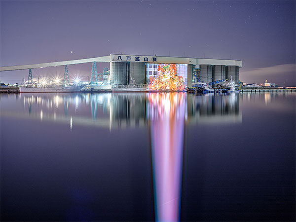 コロナ禍をはさみながら6年にわたり準備を続けた八戸市美術館での個展を、2022年に開催した。その中心となったのが《Magic Lantern》シリーズである。八戸の生活を象徴する三社大祭や冬の民俗行事「えんぶり」などを時間をかけて撮影し、その写真を再び八戸の風景に投影して再撮影することで、一枚の写真の中に異なる時間や空間を重ね合わせた。光を集め像を結ぶカメラに対し、マジックランタンは像を外へと放つ装置であり、過去のイメージを現在の空間に呼び戻す。今回の展示では、私にとって日常の風景である東京の変化を長時間露光で捉えた《An Hour Exposure》や、昼のイメージを夜の同じ場所に投影して再撮影する《Phantom Images》も加え、光と場所に刻まれた儚い時間の層の可視化を試みる。