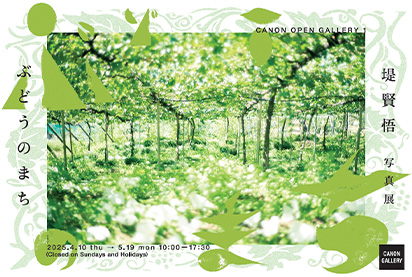 本展は、2012年にキヤノンマーケティングジャパンが若手写真家の発掘や育成を目的として開催したワークショップ「第1回フォトグラファーズセッション」においてキヤノン賞(ハービー・山口選)を受賞した堤賢悟氏による写真展です。氏が東京から移住して暮らす山梨県勝沼で葡萄農家の方や葡萄畑を撮影した作品、計26点を展示します。いつもと変わらない暮らしを表現する写真から、緩やかで優しい安心感を実感いただければ幸いです。
