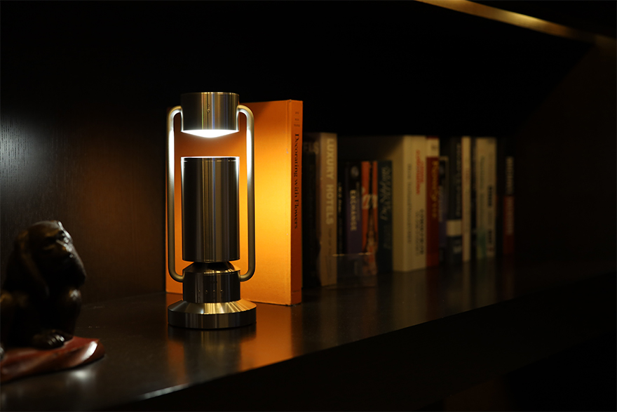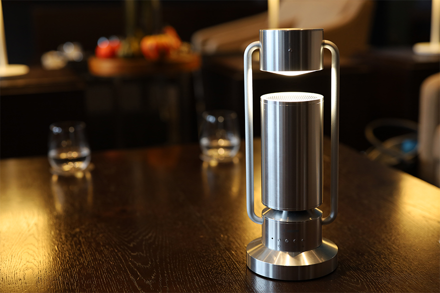 ほどよい存在感と重厚感を併せ持つアルミ削り出しのデザインは、インテリアとしても落ち着いた部屋の空間にマッチします。360°に広がるやわらかい音と好みの調光で、その日の体調や気分に合わせた休息ができそうです。