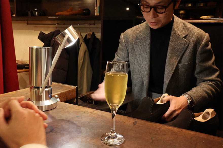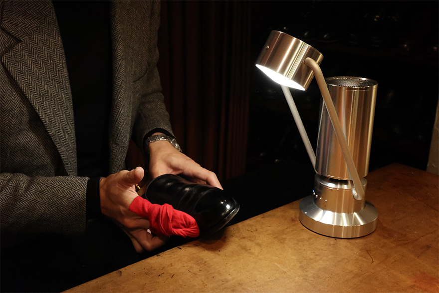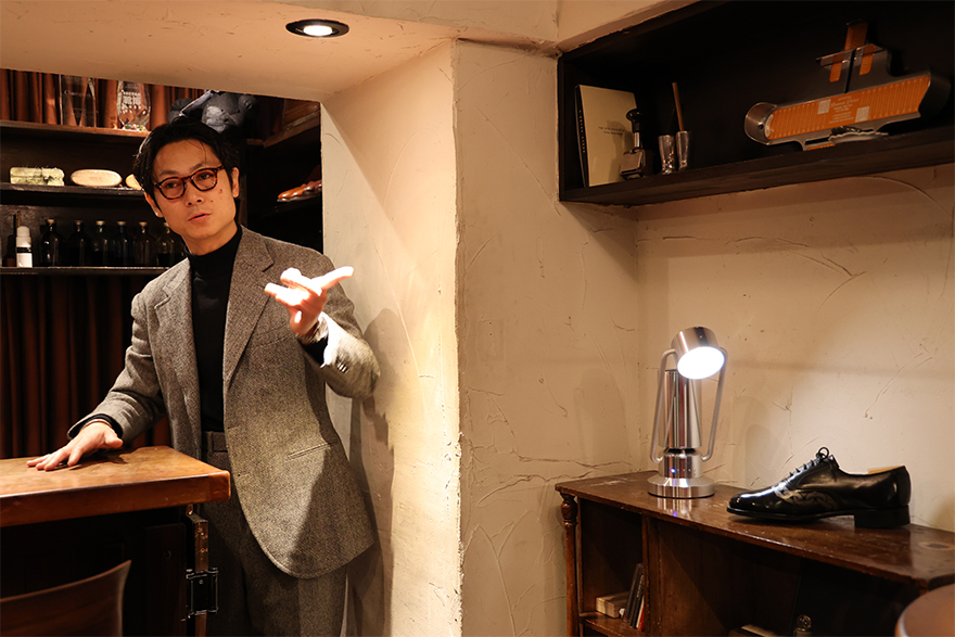 Brift H様では、職人がお客様の目の前で靴を磨き上げていく味わい深い時間が流れます。当商品を使用することで、そんなお客様との大切な空間に寄り添い、音楽や会話を楽しむリラックスできる雰囲気を醸成することができます。