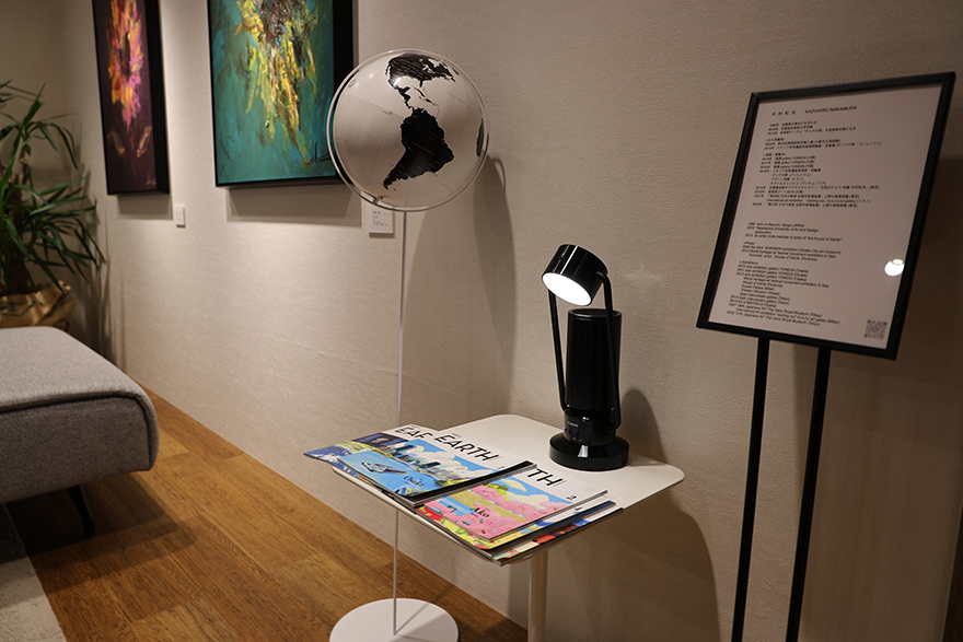 Act Caféと呼ばれるカフェスペースではalbosの音と光の演出でオフィスとは切り離された非日常空間を作り出すことができております。さらにalbosのアルミ素材のシンプルなデザインは、こだわりぬかれた家具やインテリア、絵画作品に馴染んでおり、空間づくりをサポートします。