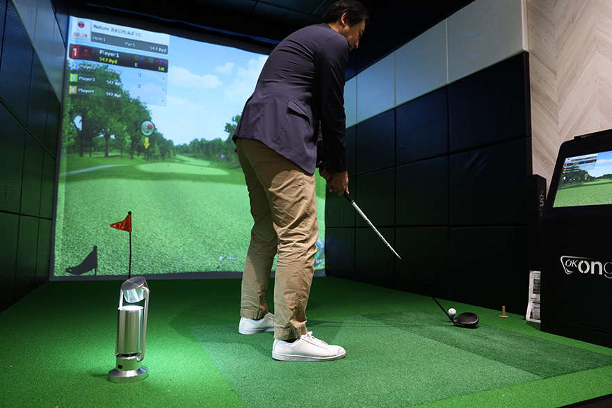 シミュレーションゴルフスタジオでは少し暗めな足元やボールを照らすライトとしても使用いただいております。また、ゴルフラウンド中は音楽をかけて集中を高めたり、気分をあげてさらに楽しくゴルフをすることができるそうです。