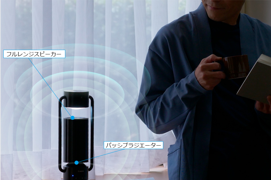 円筒型のフォルムによりボディ内の空気を振動させ、コンパクトでありながらも臨場感あるサウンドを360度全方位から体感できるようになっています。