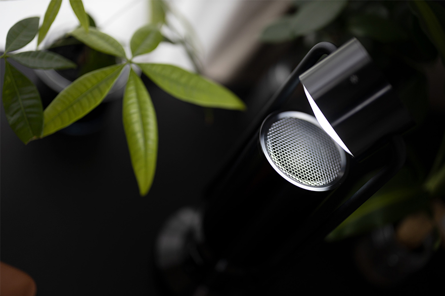 好きなモノを好きな角度から照らして、理想の空間へと演出するために。「albos Light&Speaker」では「ライト部」「アーム部」「ボディ部」の3箇所を可動できるように設計しています。