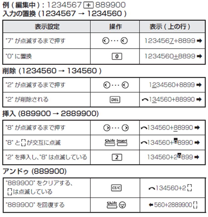 誤って式や数字を削除してしまった時には、1操作分ずつ前の画面に戻ることができます。