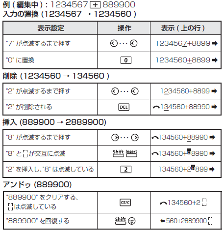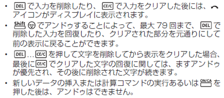 誤って式や数字を削除してしまった時には、1操作分ずつ前の画面に戻ることができます。