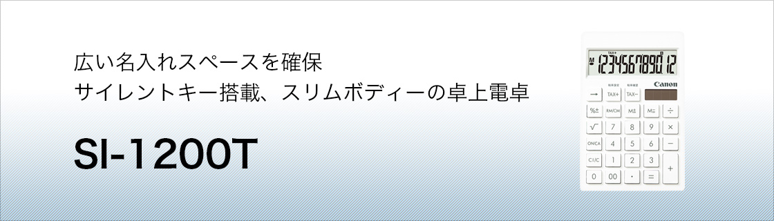 - “スリムボディーの卓上電卓”広い名入れスペースを確保