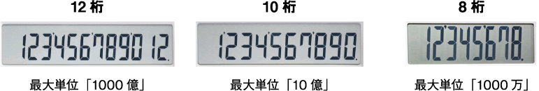 現在、電卓で一般的な桁数はこちらの3種類。日常の計算レベルなら8桁でも十分ですが、ビジネスシーンなどでも使用される可能性のある方には10桁以上がおすすめです。 一方で液晶サイズが同じ場合は上記のように桁数の少ないほうが数字が大きく表示されるメリットもあります。桁数の多い電卓を選ばれる場合は、液晶の大きさも意識しましょう。