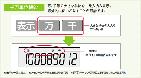 千単位、万単位といった大きな単位を一発入力し漢字で単位を表示する機能です。