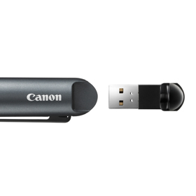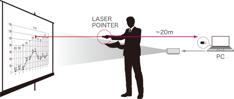 USBレシーバーを使ってパソコンとワイヤレス接続し、スライドショー操作が可能。PowerPointやAdobe Reader、Keynote、プレビューなど多彩なソフトウエアに対応しています。操作範囲20m※1でパソコン画面を見ずにプレゼンでき、見た目がスマートです。