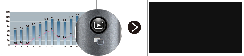 スライドの途中でブラックスクリーン(画面暗転)に切替可能。話し手への注目を集め、聞き手を集中させる演出に効果的です。