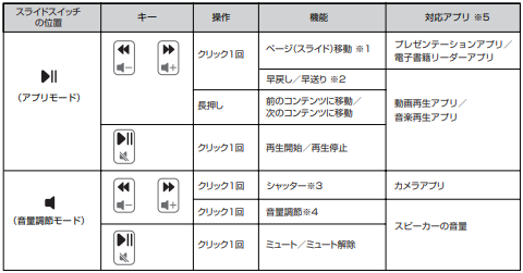 アプリによっては「早戻し」キーと「早送り」キーで逆方向にページ(スライド)移動する場合があります。デバイスと本機を接続後、アプリを起動しページ移動の方向を確かめてからご使用ください。