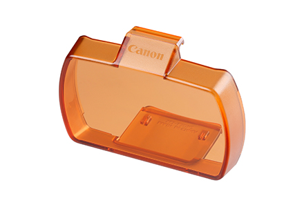 スピードライト600EX II-RT専用のカラーフィルター。白熱電球(タングステン)下でストロボ撮影すると、白熱電球とストロボ光の色温度差により、ストロボ光の届かない背景が赤味がかることがあります。カラーフィルターSCF-E3を装着すると、両光源の色温度差を小さくして、適切なホワイトバランスに近づけることができます。バウンス時に、側面からの光漏れ対策を施した、使い勝手のいいハードタイプです。