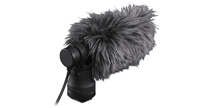 前方120°の指向性を持ちステレオ録音に対応しているため、音源が複数あるライブ会場などで臨場感・奥行き感のある音での動画撮影をサポートします。無指向性のカメラ内蔵マイクに比べて、周囲の雑音を抑えながら動画の撮影を行うことが可能。さらに、防風効果の高いファー型のウインドスクリーン(同梱)を使用すれば、風のノイズにかき消されることなくはっきりとした音声での動画撮影も。