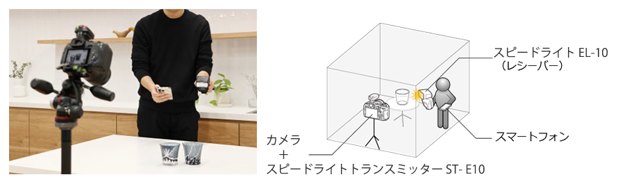 カメラから離して自由な角度から発光させて撮影