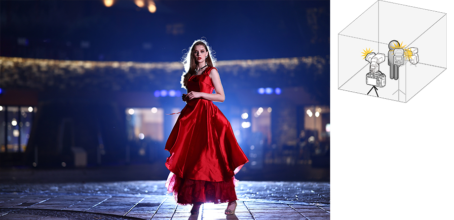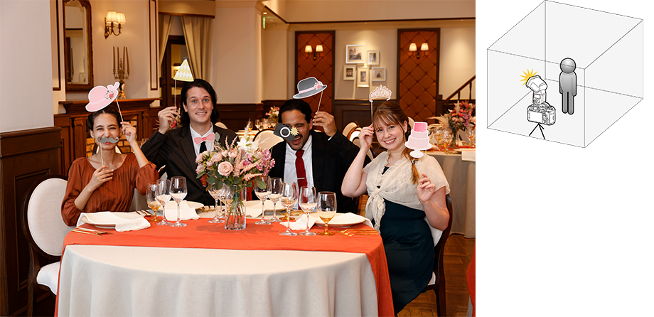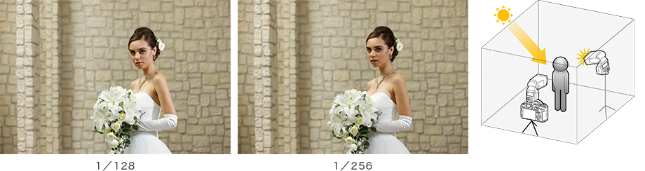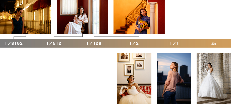 高感度撮影時、1/8192の微小発光にすることで、大光量では難しかった地明かりを活かした撮影を実現。暗いチュエーションでも雰囲気をそのままに、微妙な光のコントロールが可能です。