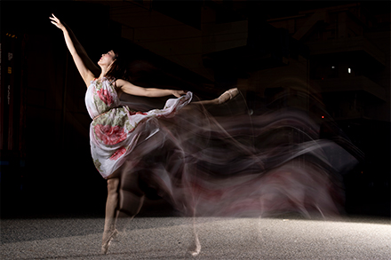 通常、ストロボ撮影は先幕シンクロによって行われますが、スピードライト EL-1(Ver.2)は、ワイヤレス発光時の後幕シンクロに対応。シャッターが下りる直前に発光させるので自然な形で光の軌跡を写しだせます。オフカメラでの自在な光の演出も可能に。