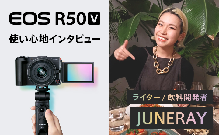 EOS R50 V 使い心地インタビュー|JUNERAY幅広いメディアで活躍中のライター・JUNERAYさんに、EOS R50 Vの使い心地をインタビューしました。