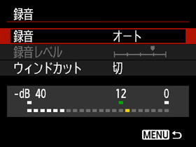 風が強いシーンで動画を撮影するとき、活躍する機能。風の音を軽減して、クオリティーの高い動画表現を実現します。撮影録音レベルは「オート/マニュアル」に切り替えることが可能。マニュアル録音レベルは64段階から任意で調整することができます。