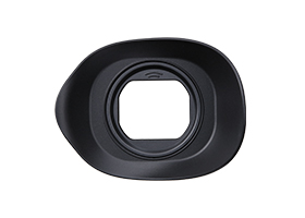 EOS R1の視線入力機能に対応した「大型アイカップ」で、アイカップの接眼部にはEOS R3用アイカップER-hE同様のシリコーンゴムを採用しています。視線検出の障害となる外光入射の影響を抑制することで、視線入力時の視線検出を安定させ、通常撮影時にも視認性を改善する効果が得られます。