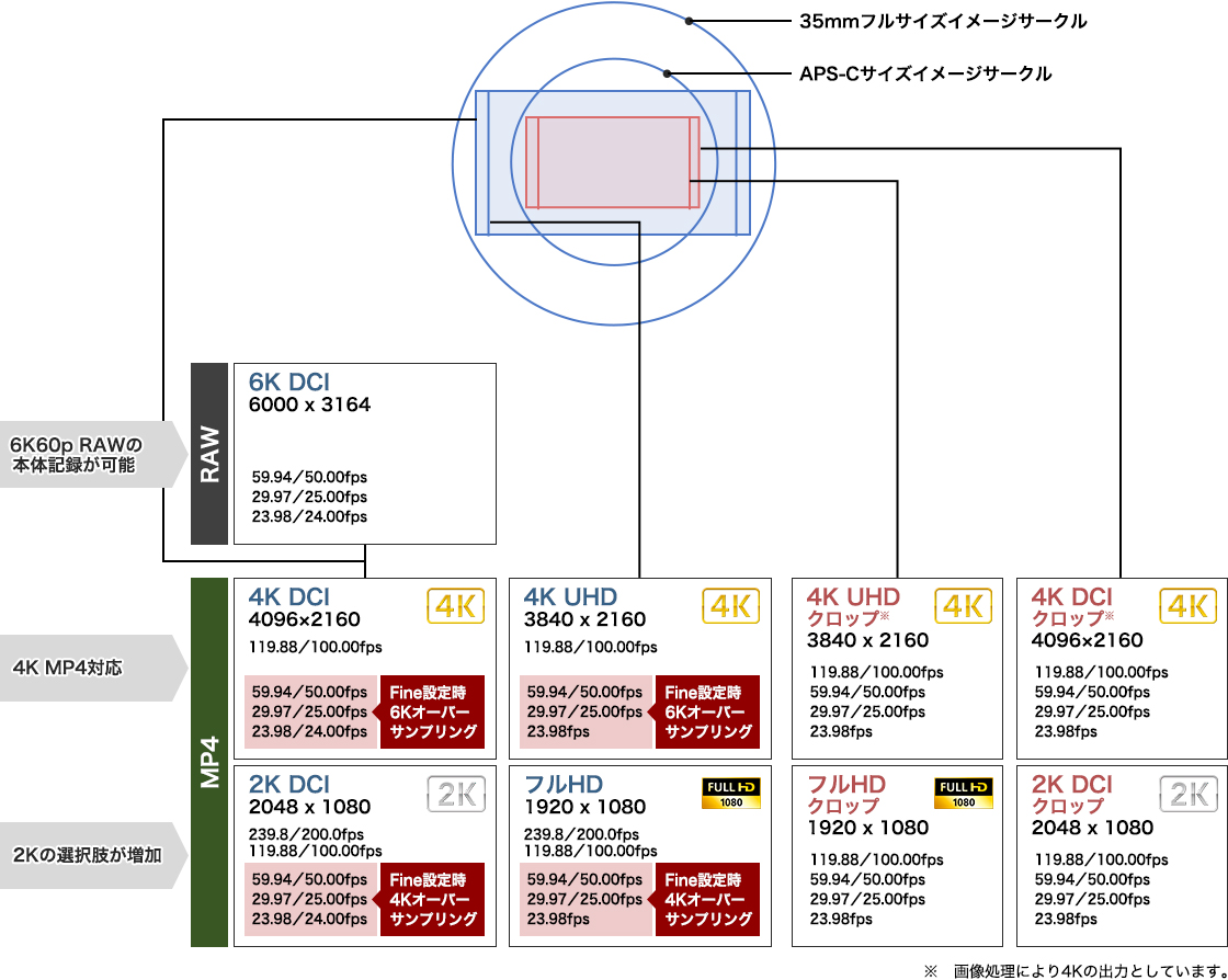 6K/60P RAW内部記録対応/4K MP4対応