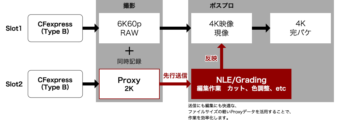 ファイルサイズの軽いProxy動画をスロット2に同時記録