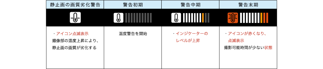 温度上昇にともなう撮影時の制限