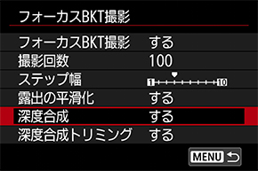 [フォーカスBKT撮影:する]設定時は選択できません。