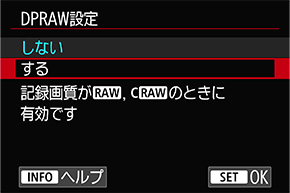 カメラ内でのDPRAW現像処理は不可。