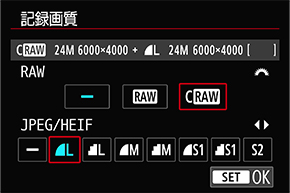 記録画質はJPEGとなります。RAW+JPEG(ラージ/ファイン)またはRAWが設定されている場合は、JPEG(ラージ/ファイン)で記録されます。